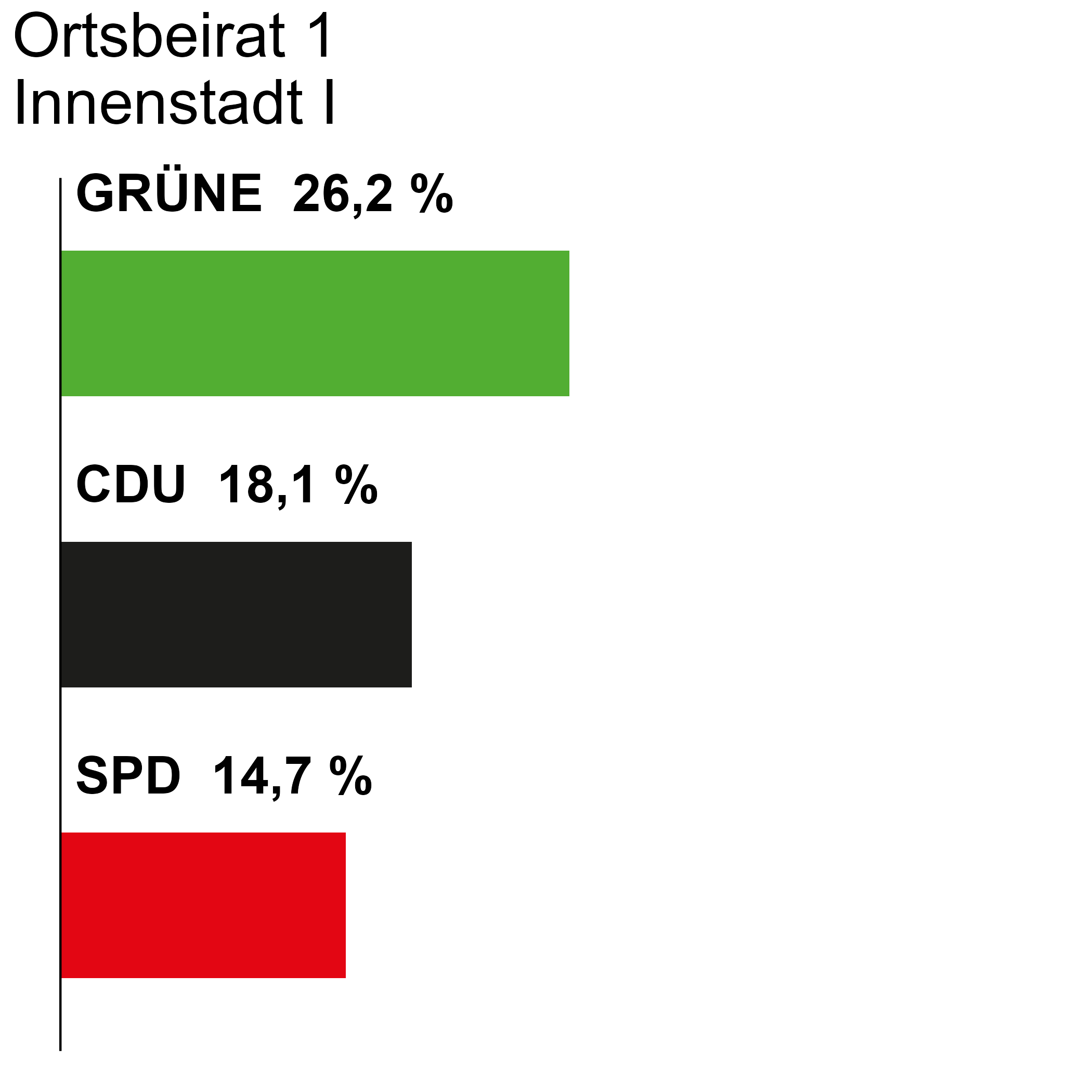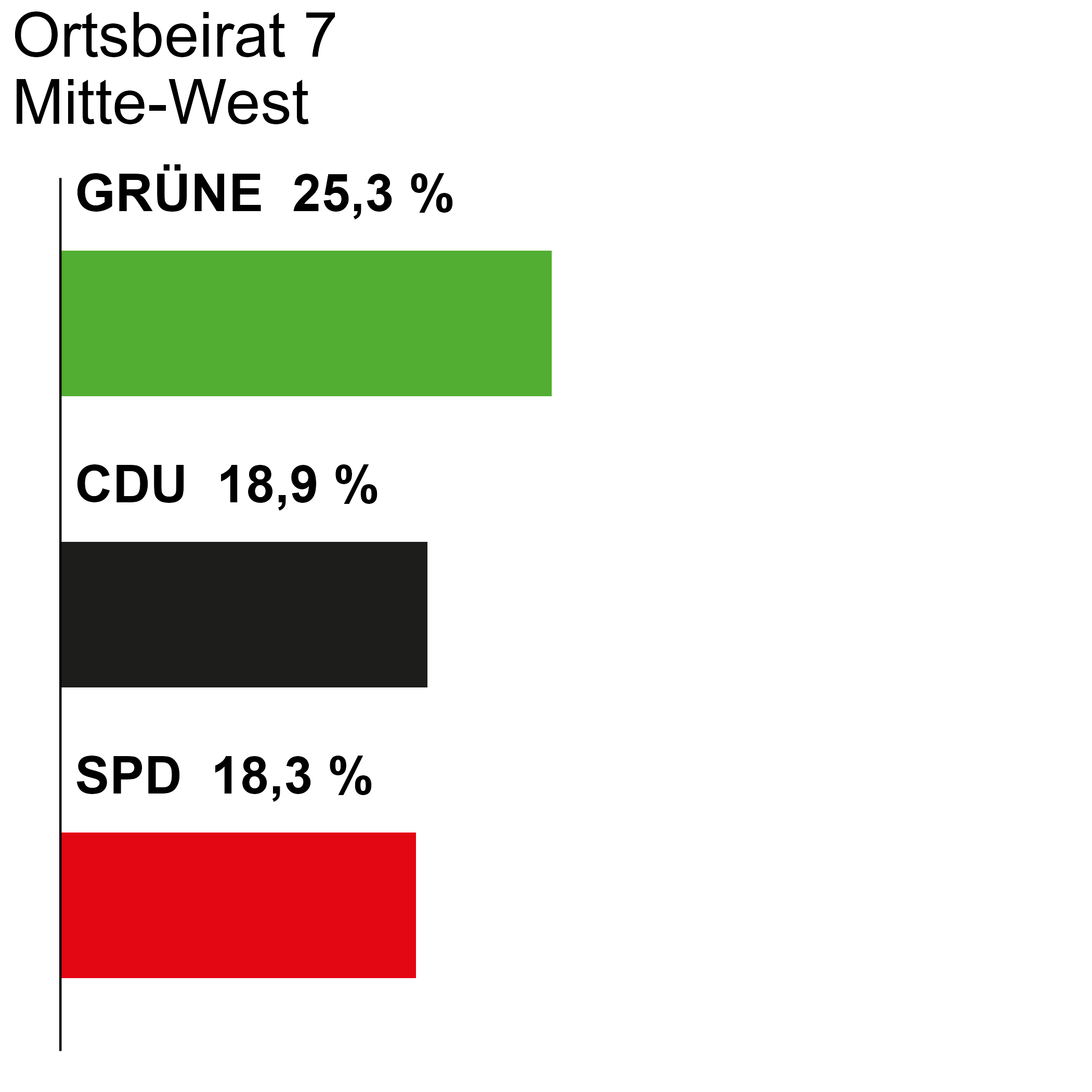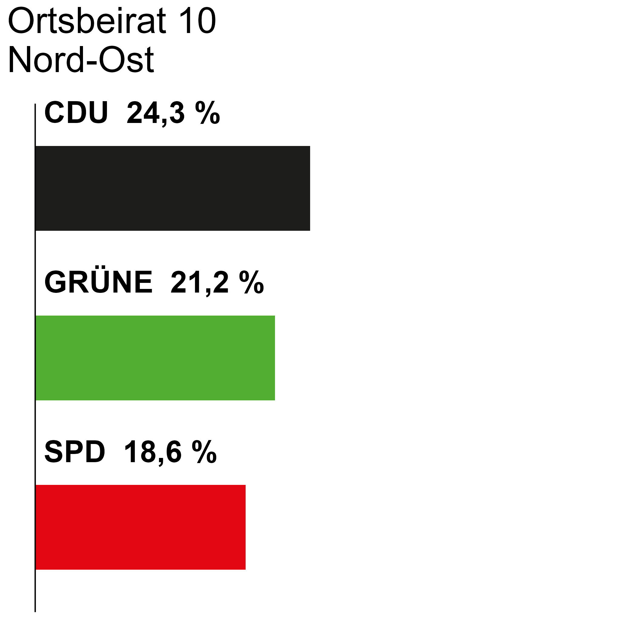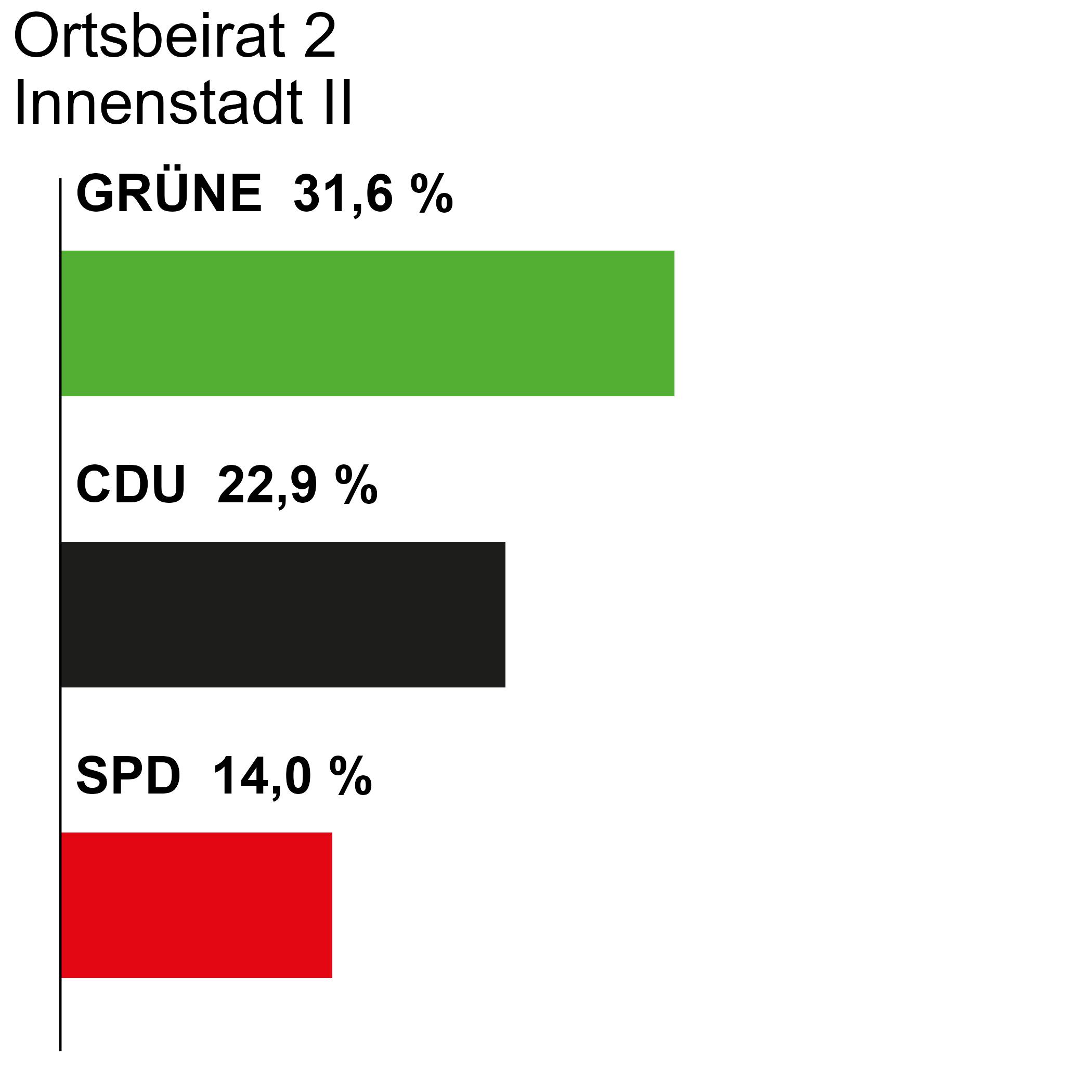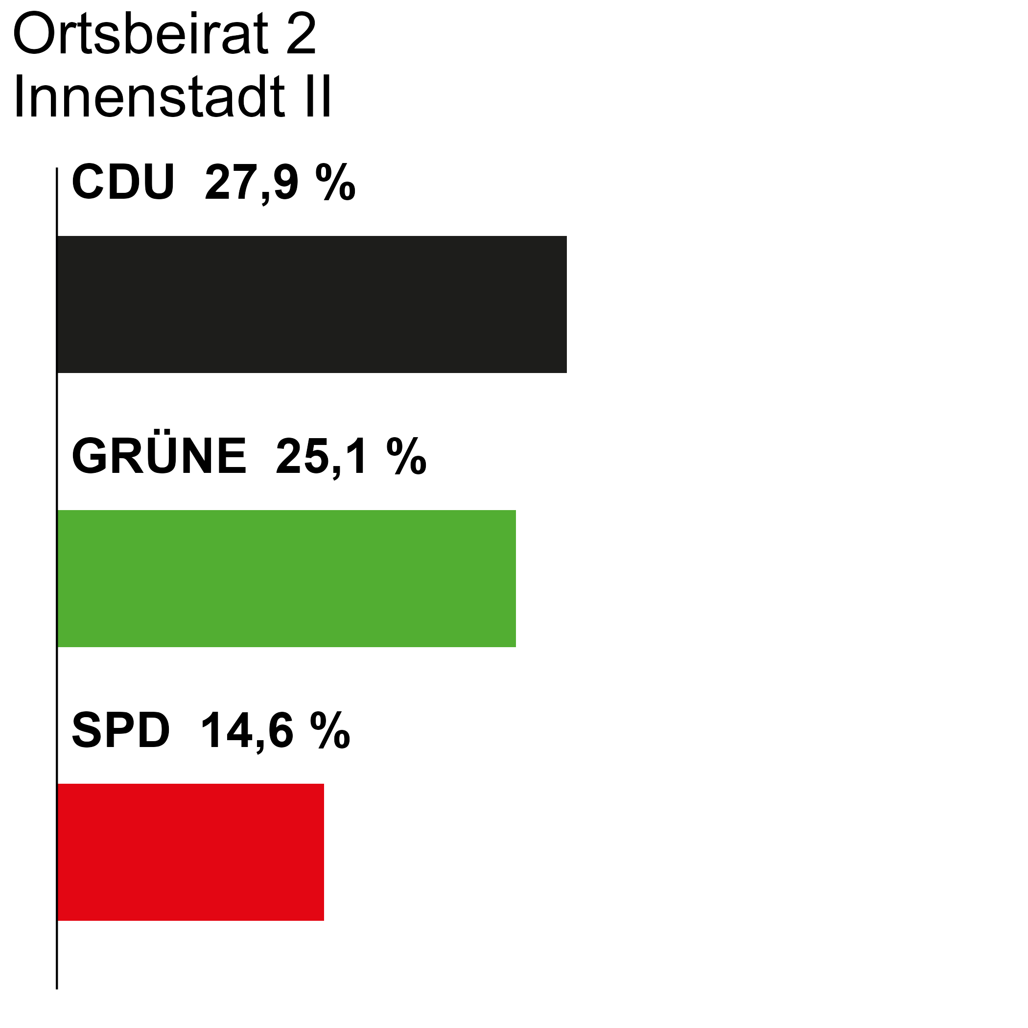 Die CDU wurde in den Ortsbeiräten am häufigsten stärkste Kraft. In insgesamt zwölf der 16 Ortsbezirke erhielt sie die meisten Stimmen. Dahinter folgten die Grünen, die 2021 noch in neun der 16 Ortsbezirke gewonnen hatten. Sie gewannen in vier Ortsbezirken die Stimmenmehrheit. In diesen hatten sie auch 2021 schon vorn gelegen.