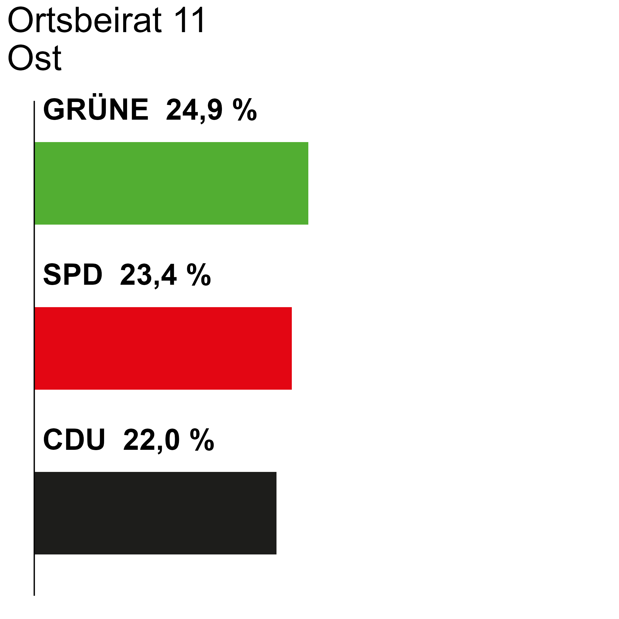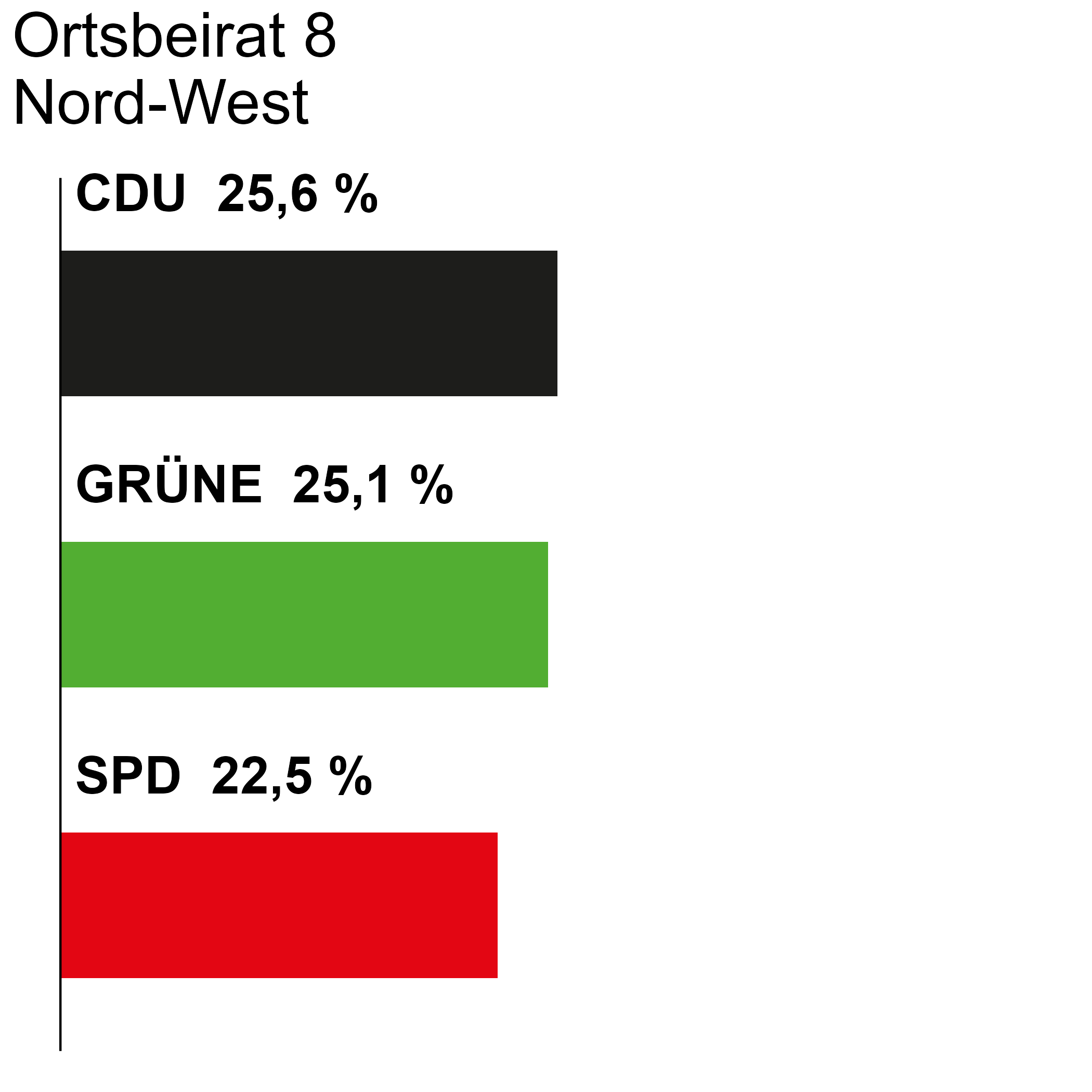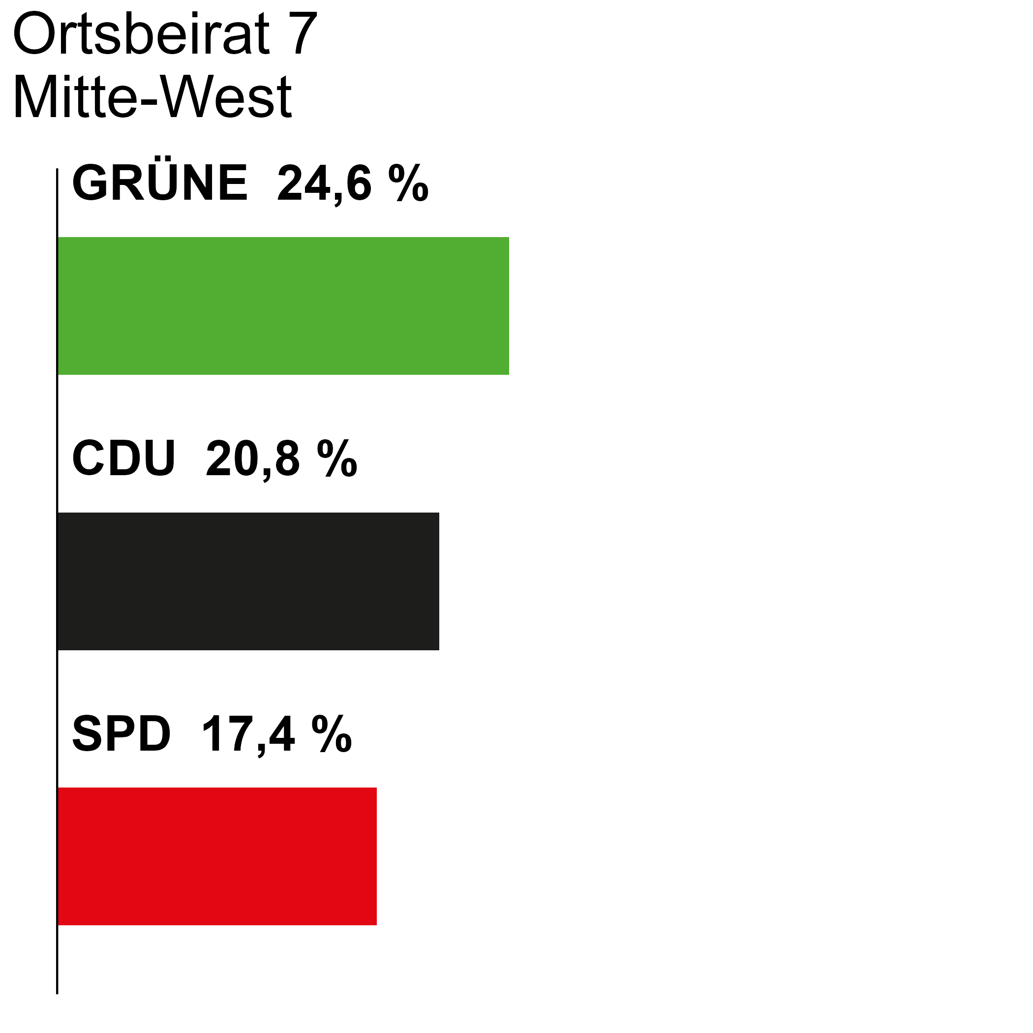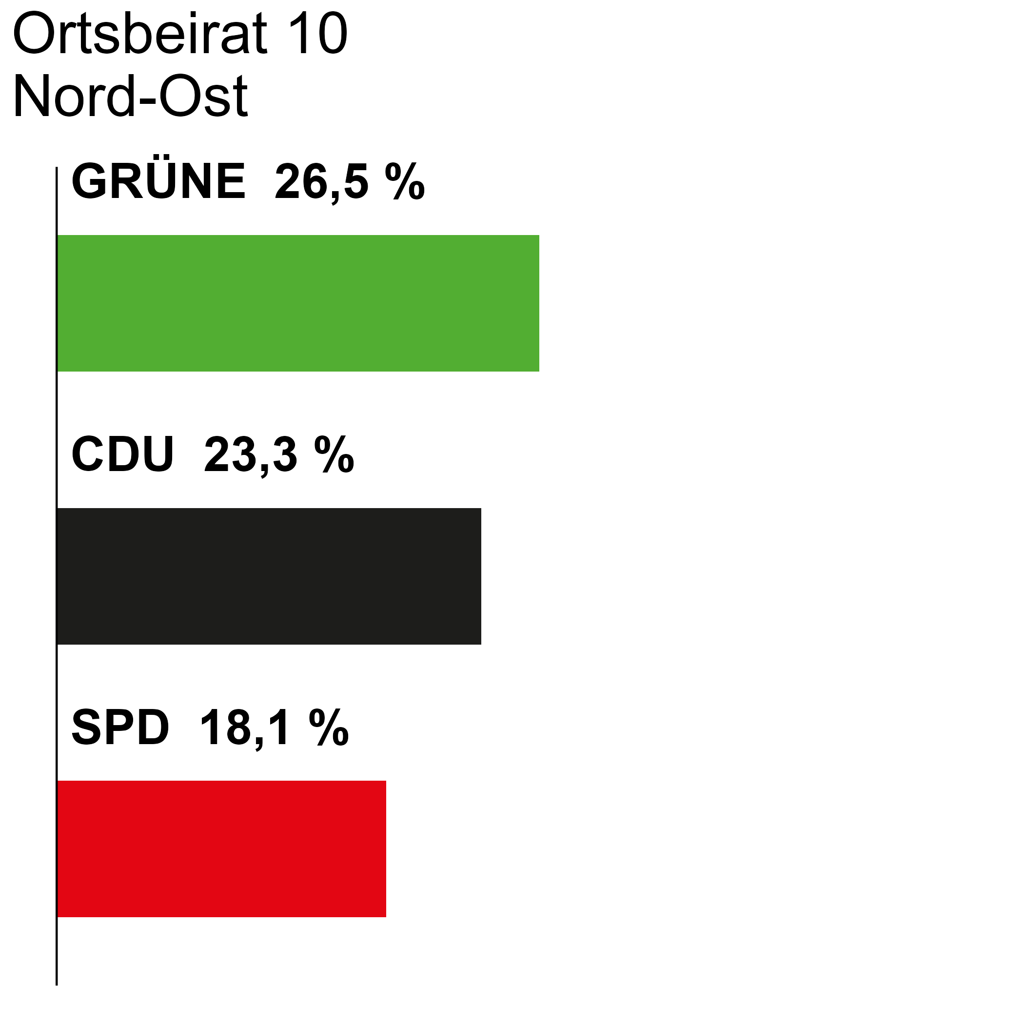 Die CDU wurde in den Ortsbeiräten am häufigsten stärkste Kraft. In insgesamt zwölf der 16 Ortsbezirke erhielt sie die meisten Stimmen. Dahinter folgten die Grünen, die 2021 noch in neun der 16 Ortsbezirke gewonnen hatten. Sie gewannen in vier Ortsbezirken die Stimmenmehrheit. In diesen hatten sie auch 2021 schon vorn gelegen.