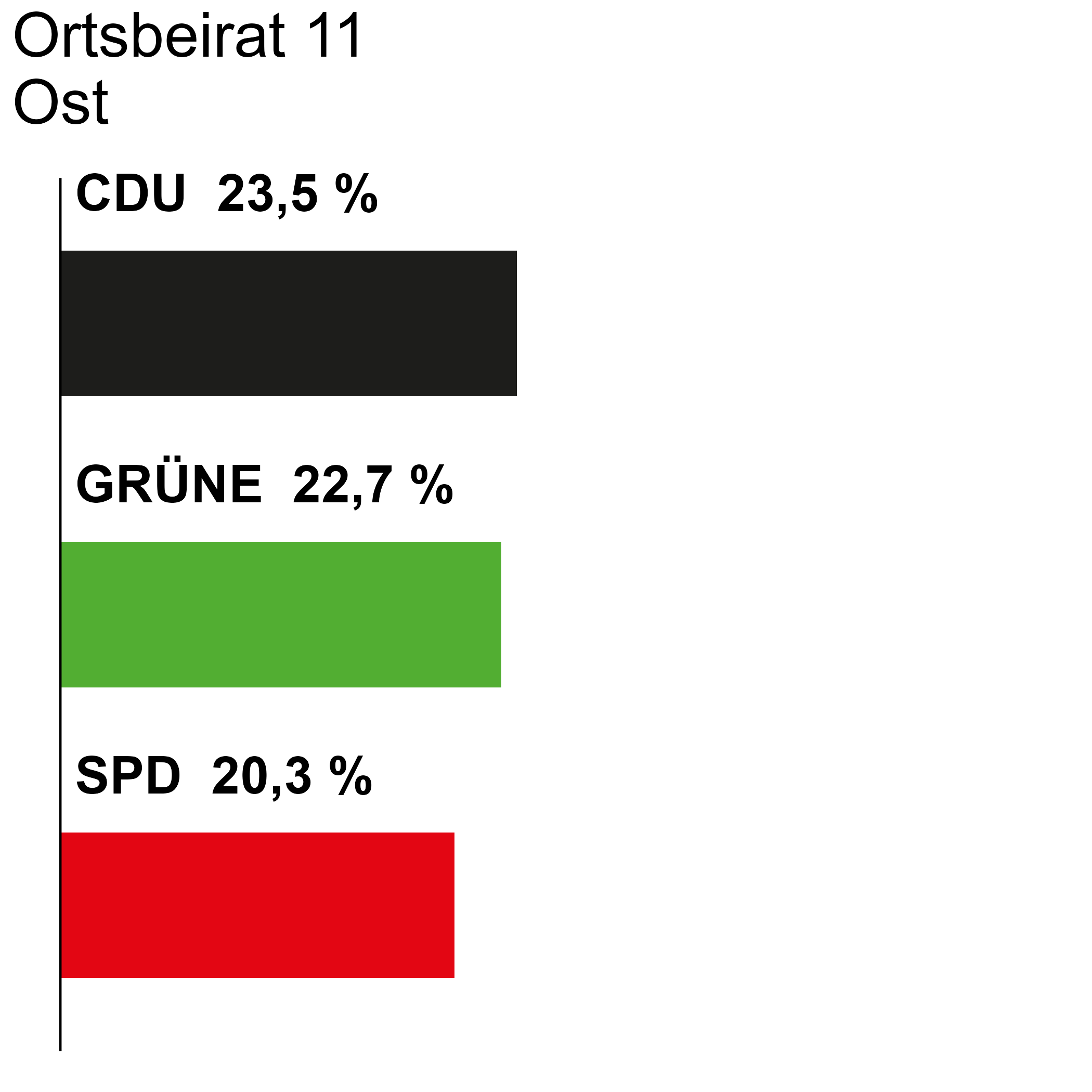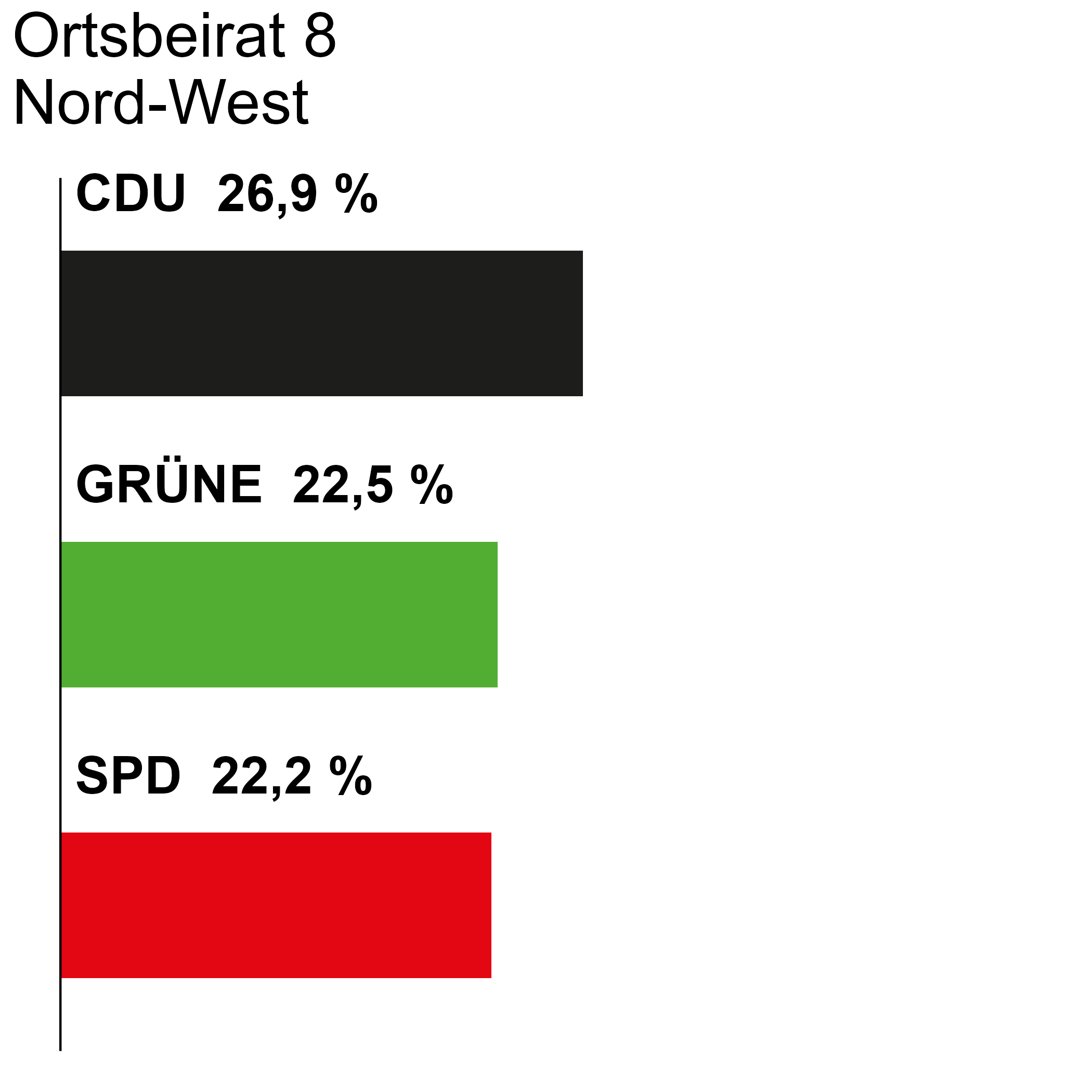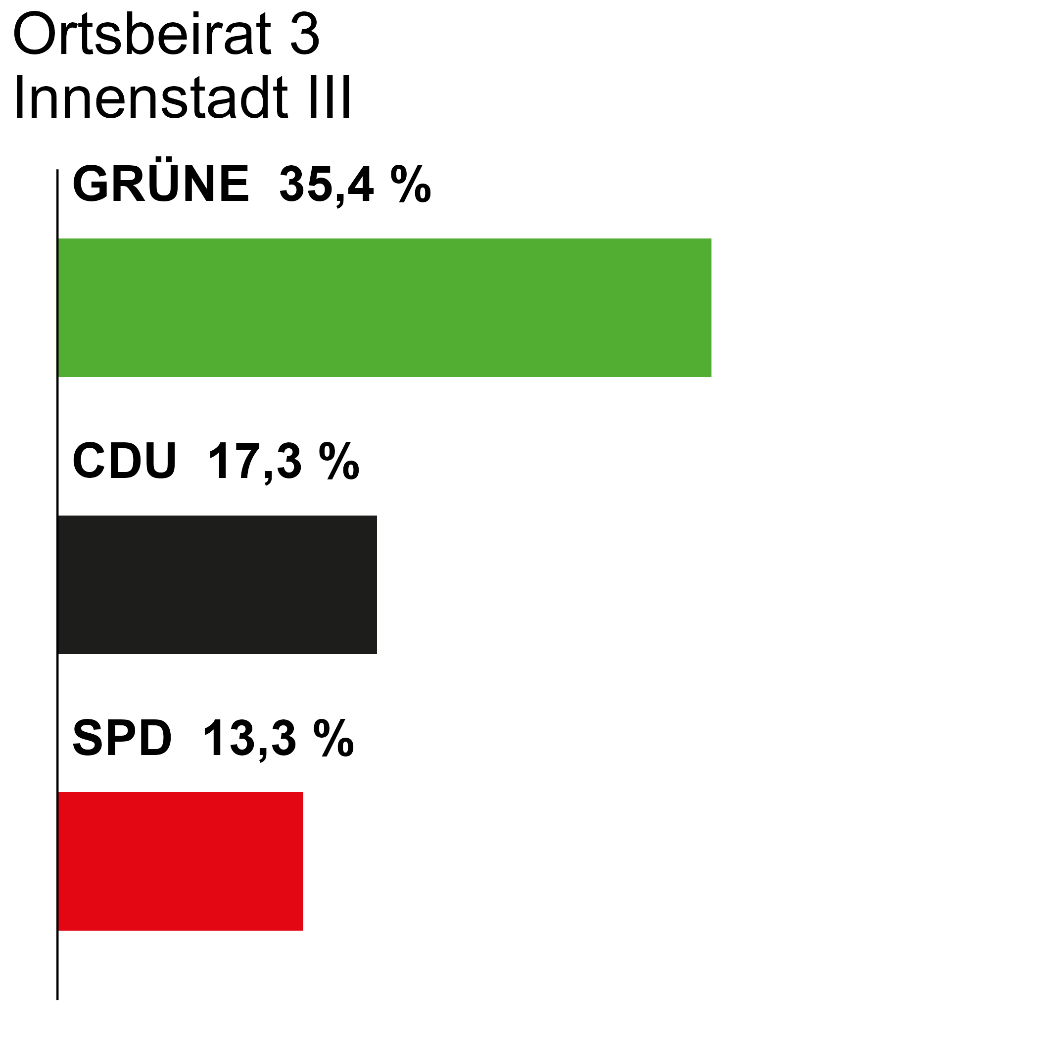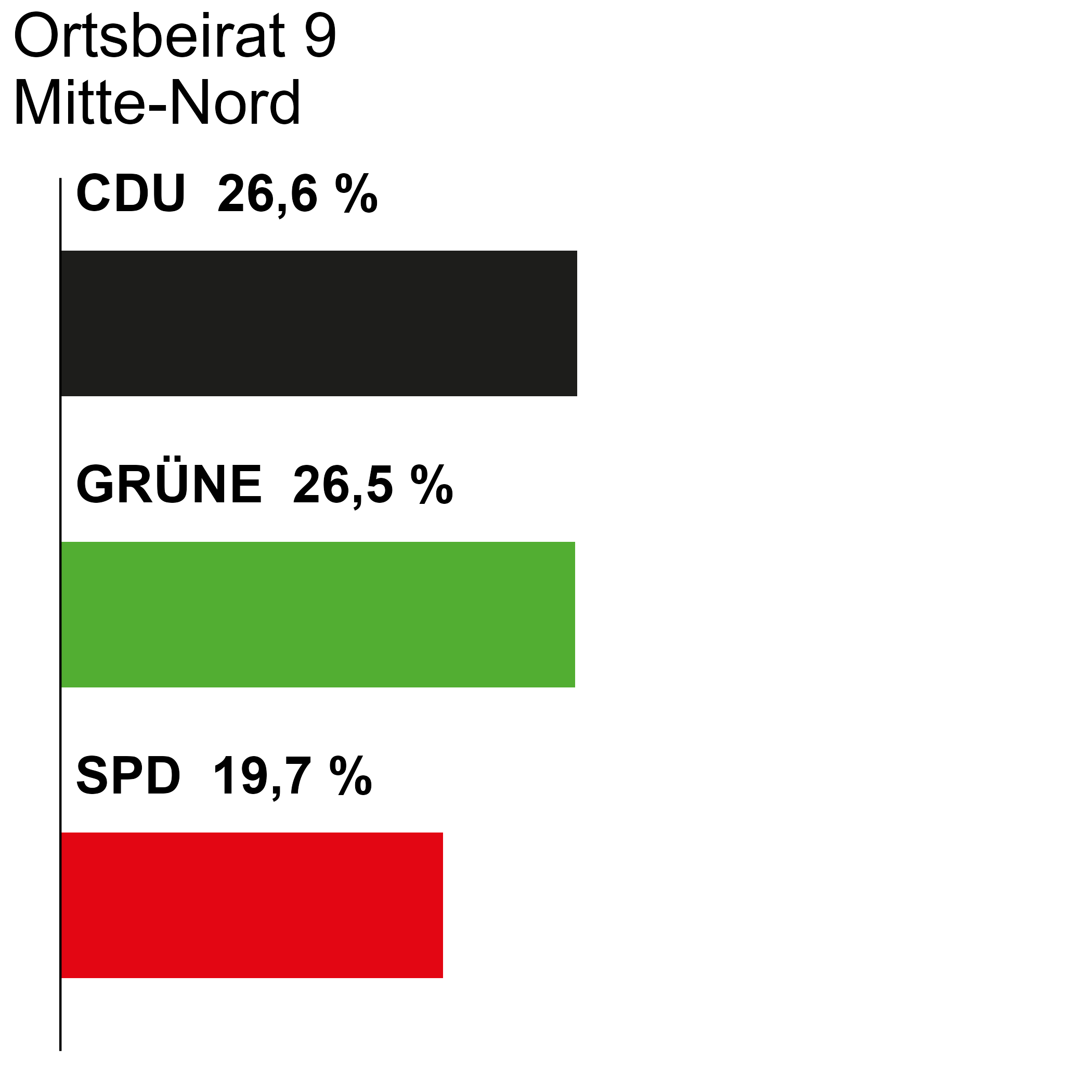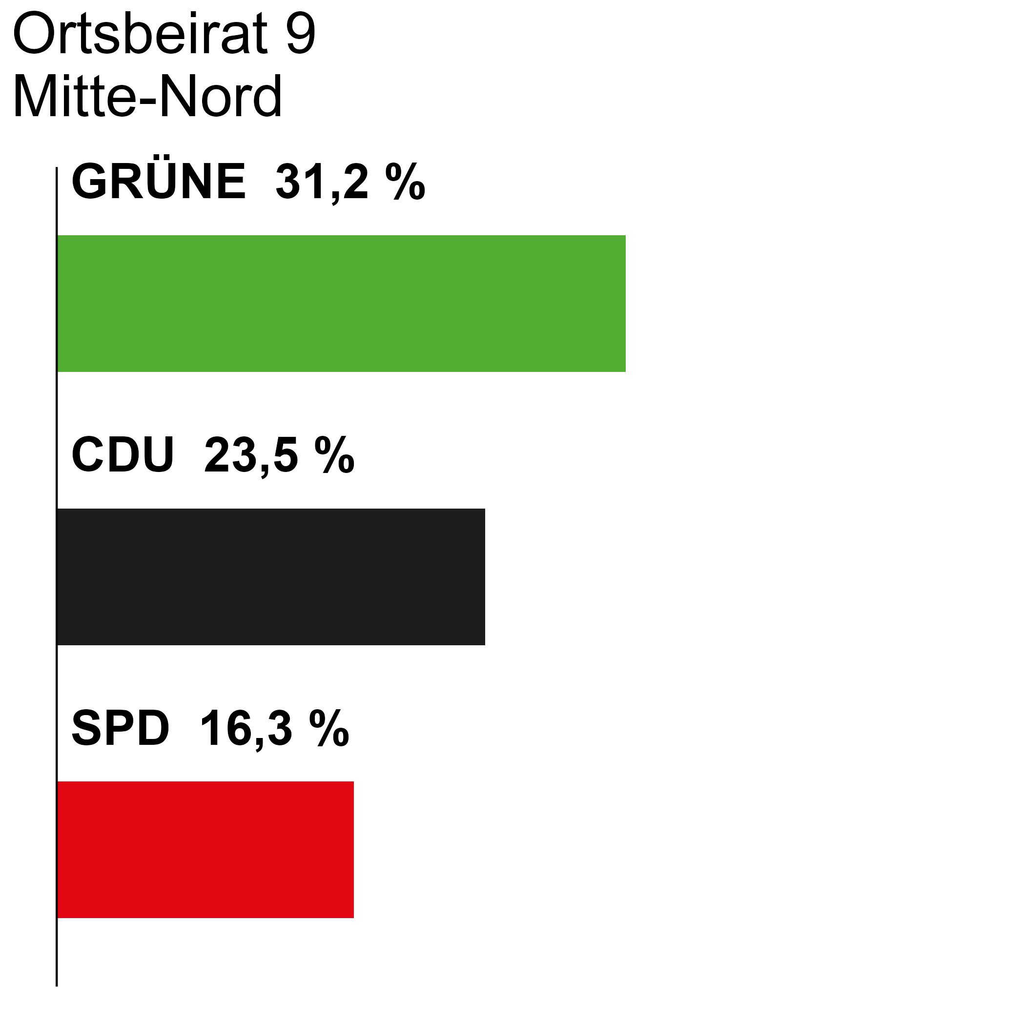 Die CDU wurde in den Ortsbeiräten am häufigsten stärkste Kraft. In insgesamt zwölf der 16 Ortsbezirke erhielt sie die meisten Stimmen. Dahinter folgten die Grünen, die 2021 noch in neun der 16 Ortsbezirke gewonnen hatten. Sie gewannen in vier Ortsbezirken die Stimmenmehrheit. In diesen hatten sie auch 2021 schon vorn gelegen.