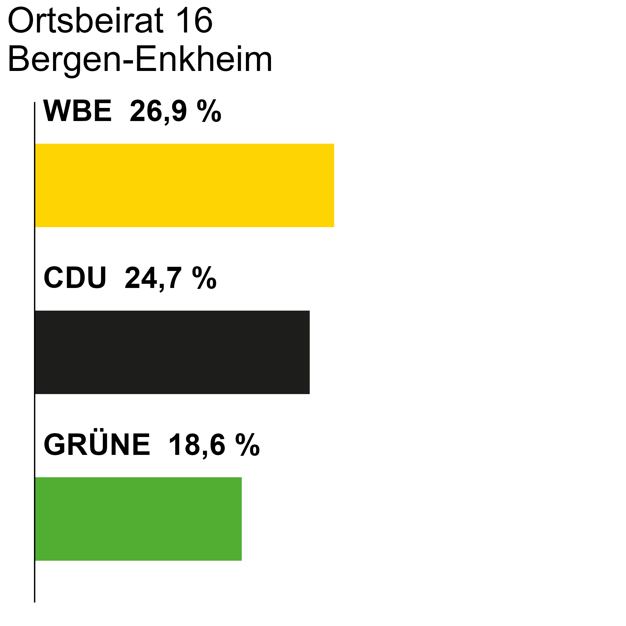 Insgesamt wechselte in sechs Ortsbezirken die stärkste Partei bzw. Wählergruppe im Vergleich zur Wahl 2021. In fünf Ortsbezirken überholte die CDU die Grünen. Die Wählervereinigung WIR BERGEN-ENKHEIMER gab, nach zwei Wahlperioden als stärkste Kraft im Ortsbezirk 16 – Bergen-Enkheim, diese Position wieder an die CDU ab. Üblicherweise stellt die stärkste Fraktion den Vorsitz des Ortsbeirats. Mit einem Wechsel der stärksten Kraft ändert sich jedoch nicht zwingend die Parteizugehörigkeit der Ortsvorsteherin oder des Ortsvorstehers. Sie oder er wird nach § 82 Abs. 5 der Hessischen Gemeindeordnung aus der Mitte des Ortsbeirats gewählt, benötigt für die Wahl also eine Mehrheit der Ortsbeiratsmitglieder.